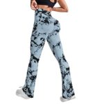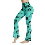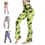 For any yoga enthusiast looking for a pair of leggings that comes first in both fashion and function, this pretty pair of yoga leggings will work great. Featuring a nice tie-dye print on a lemon-yellow base, a wide elastic waistband, and a flared style, it makes the wearer look beautiful while performing the poses. Made from the best fabrics, it’s sweat-wicking, stretchable, lightweight, comfortable, and durable.