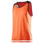 The Orange & Black Running Vest for women sports a bright shade of orange in the front and black on the sleeves and the back. This smart color block combination ensures adding shape to all wearers. The straight cut fit and comfortable armholes ensure improving flexibility while in the move. This option can also be used for many other sports, training and fitness purposes as well.